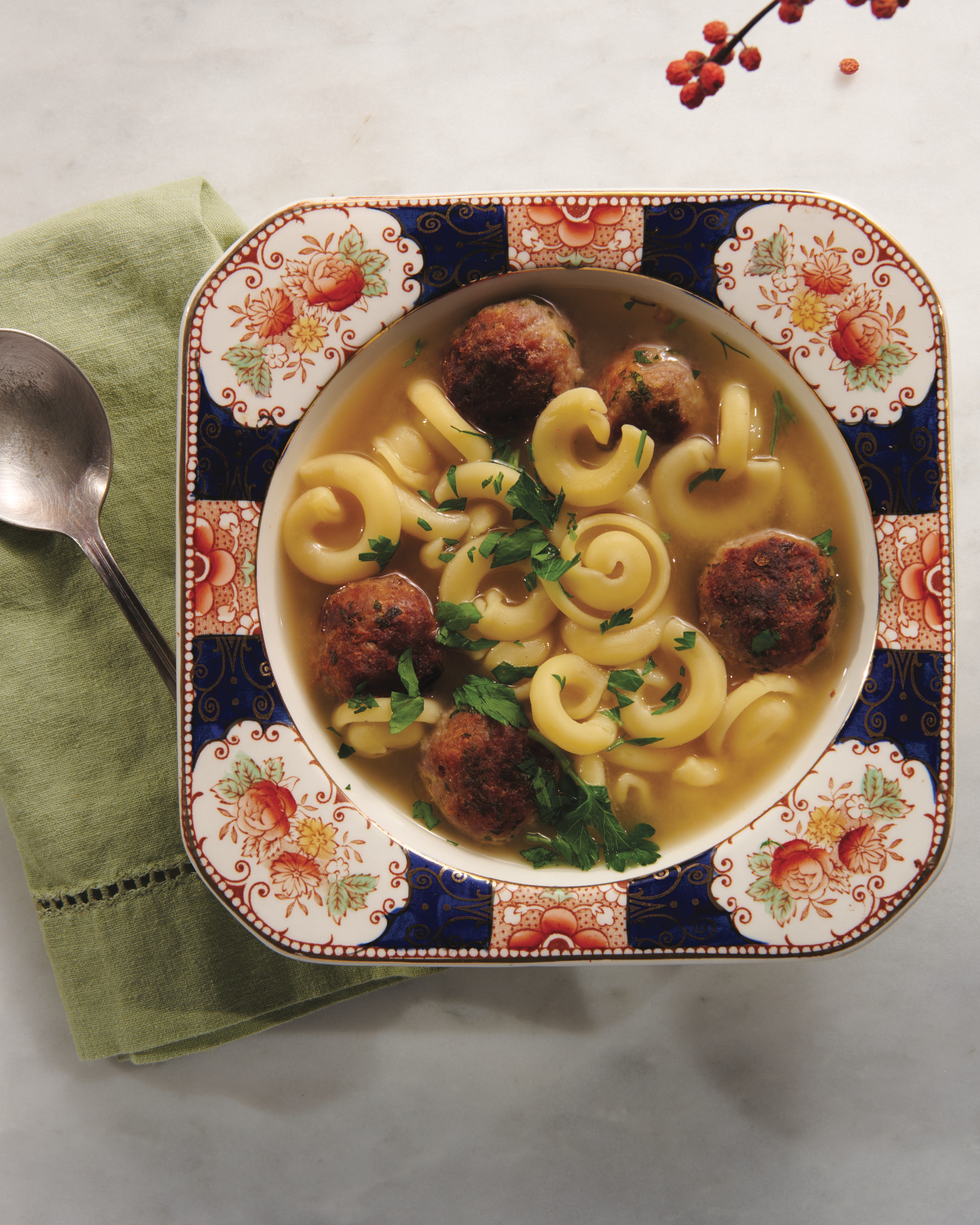 Divide the meatballs among bowls and ladle the broth and pasta over top. Sprinkle a bit of parsley over each serving and pass more pecorino at the table. Finish with a few good turns of black pepper.