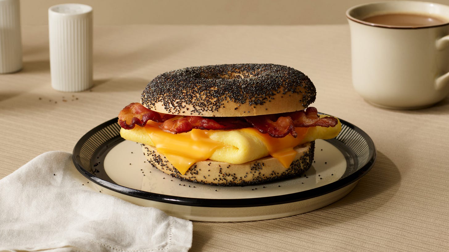 Oh, and his go-to order is a bacon, egg, and cheese on a plain bagel.
