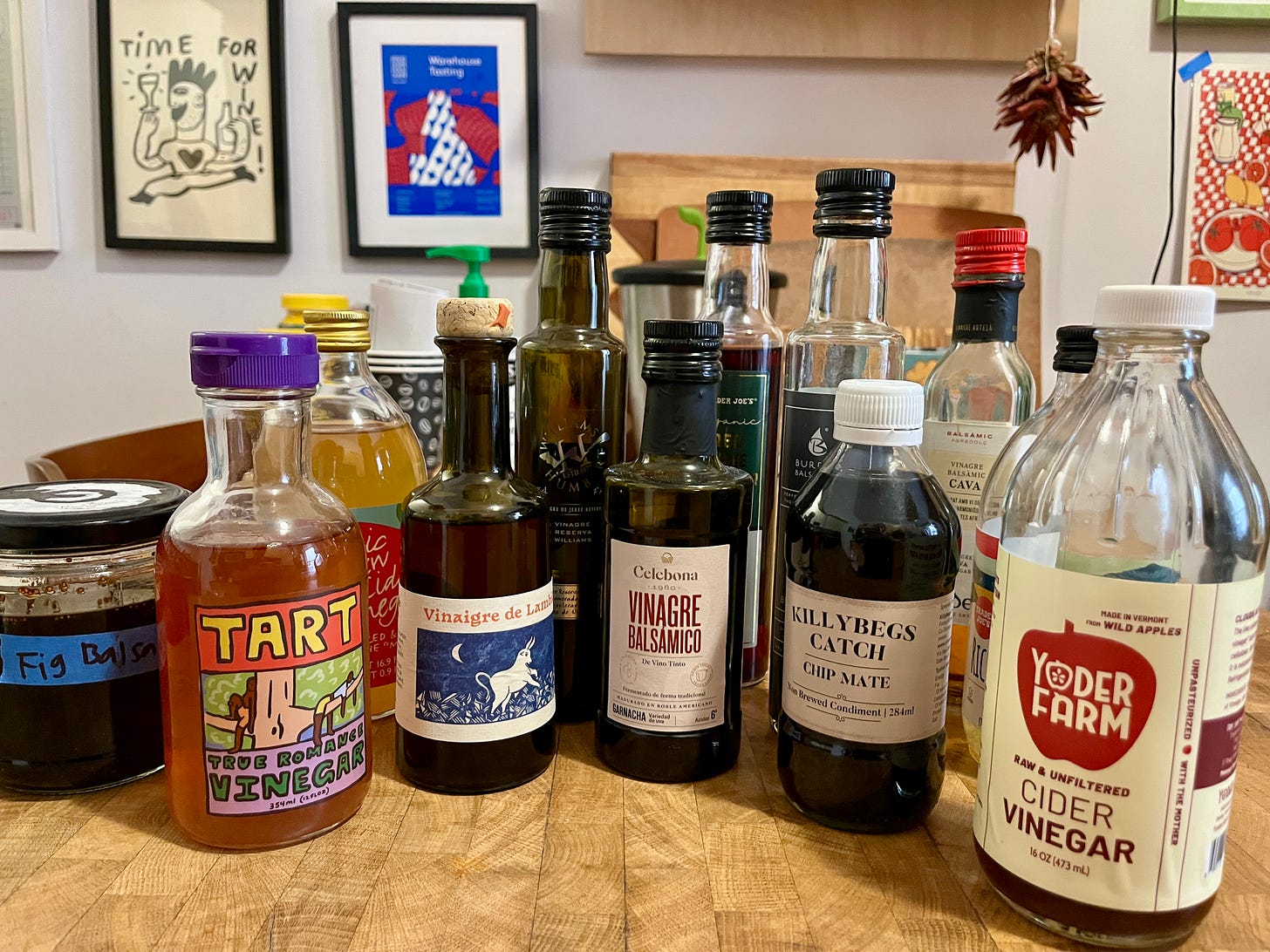 Build out your core vinegar collection. Balsamic and red wine vinegar are essential, but a good apple cider or rice wine vinegar can take you pretty far. I always have lemons on hand and I use them a lot in salads, and oranges are great in dressings too.