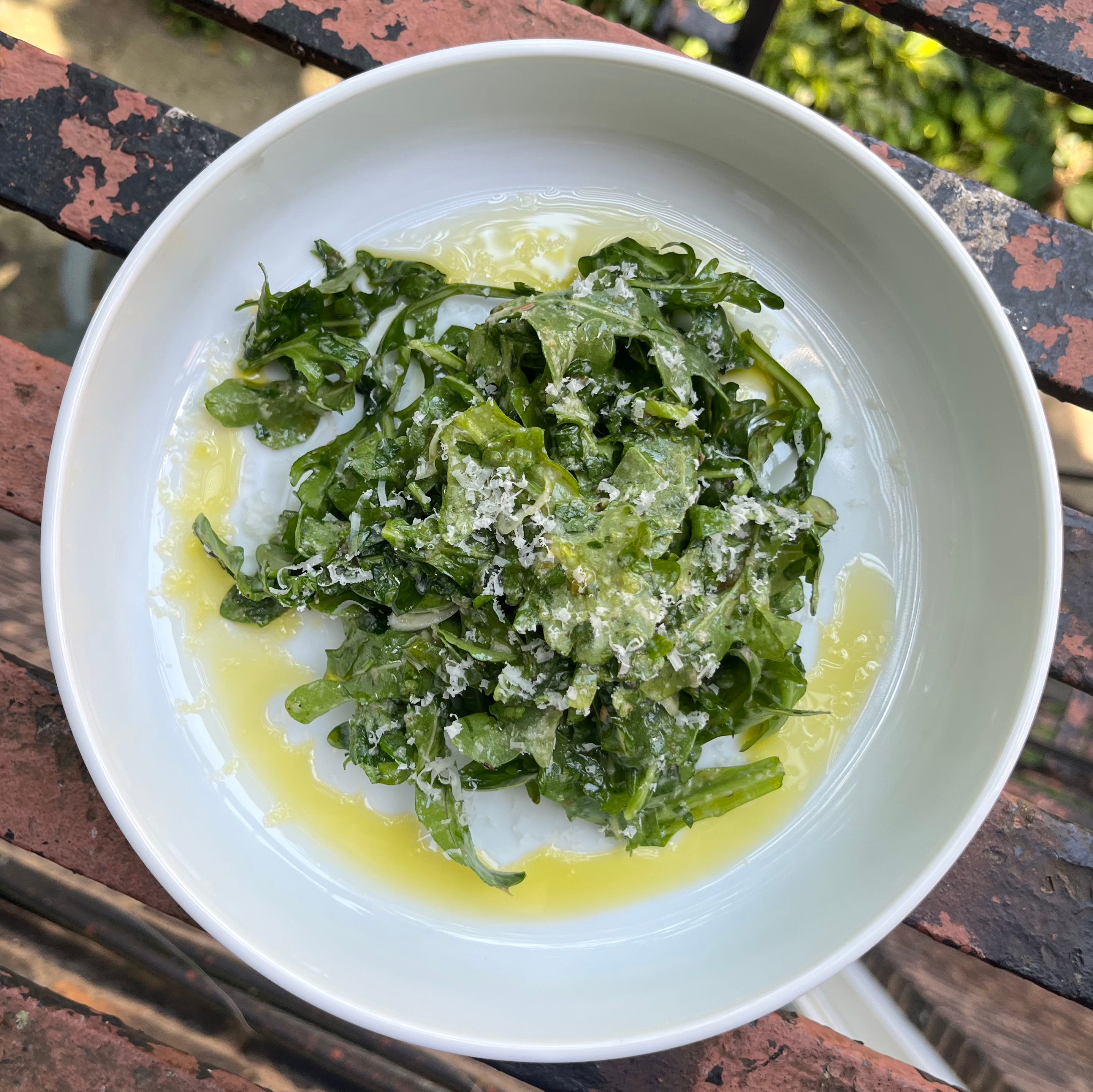 To make: Toss greens together. Add dressing to taste. Top with parm.